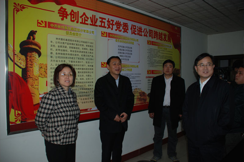 3月12日下午,省委組織部副部長安平、安陽市委組織部部長彭治安、林州市市委書記鄭中華、市長王軍、市委組織部部長周翔等領導在蒞臨林州市專題視察紅旗渠干部學院建設后,深入林州重機調研企業黨建工作情況,我公司人力資源處處長路建存接待、陪同。